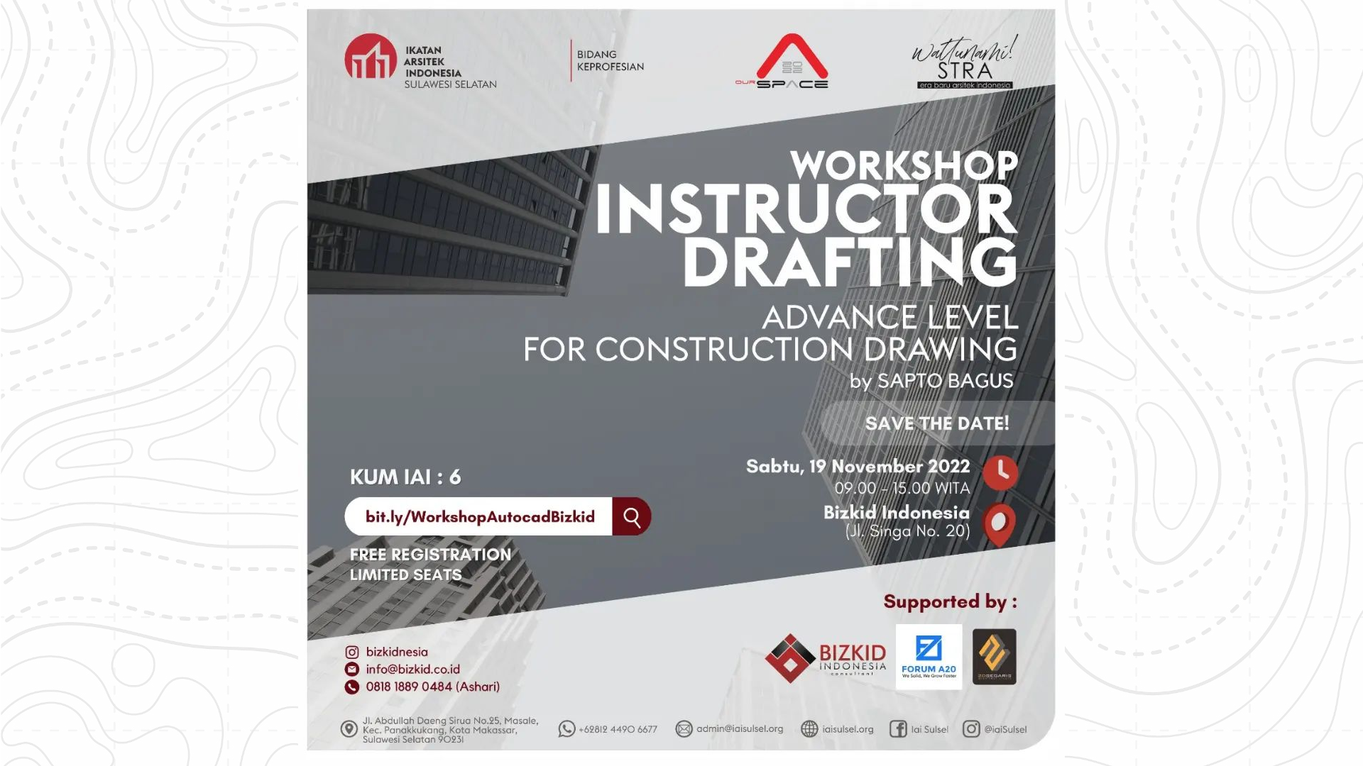 Setelah sukses melakasanakan sharing session “Optimalisasi Gambar Kerja Autocad”, Bizkid Indonesia melaksanakan workshop dengan tingkatan yang lebih tinggi yaitu “Workshop Instructor Autocad Level Advance For Construction Drawing”.